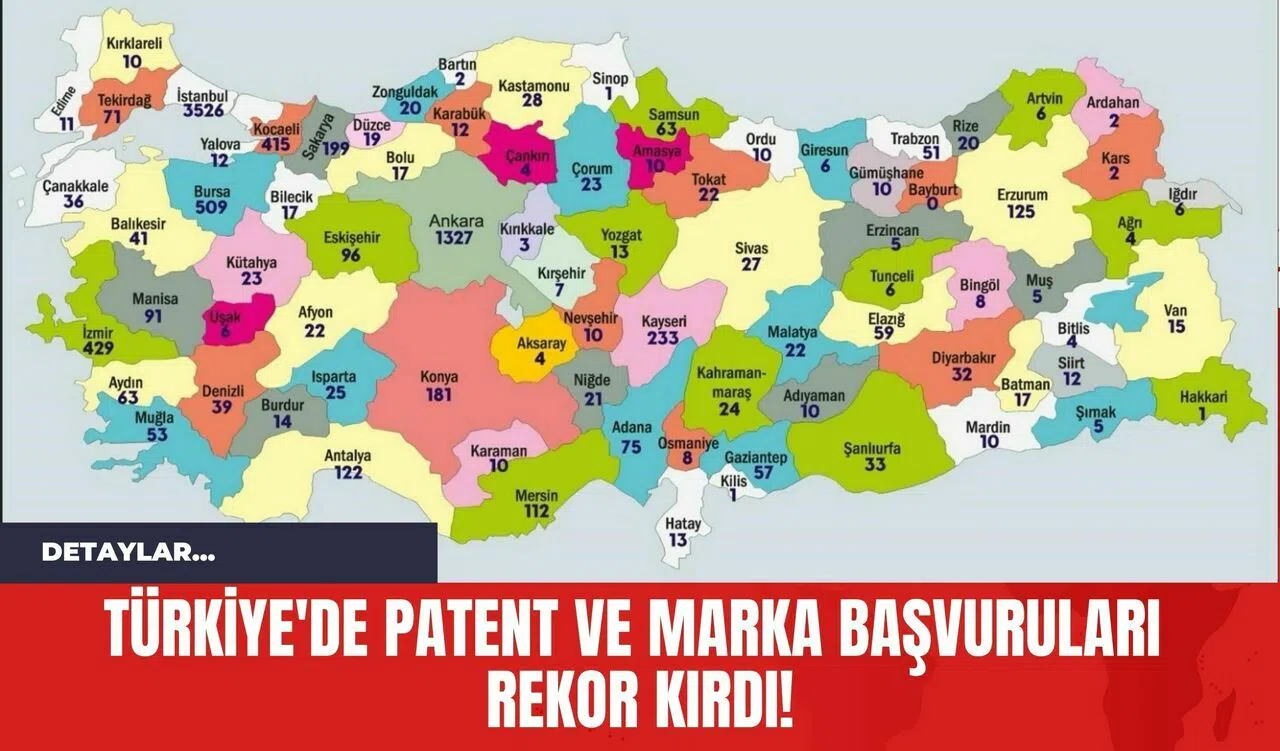 İstanbul, 3 bin 526 patent başvurusu ile ilk sırada yer aldı.