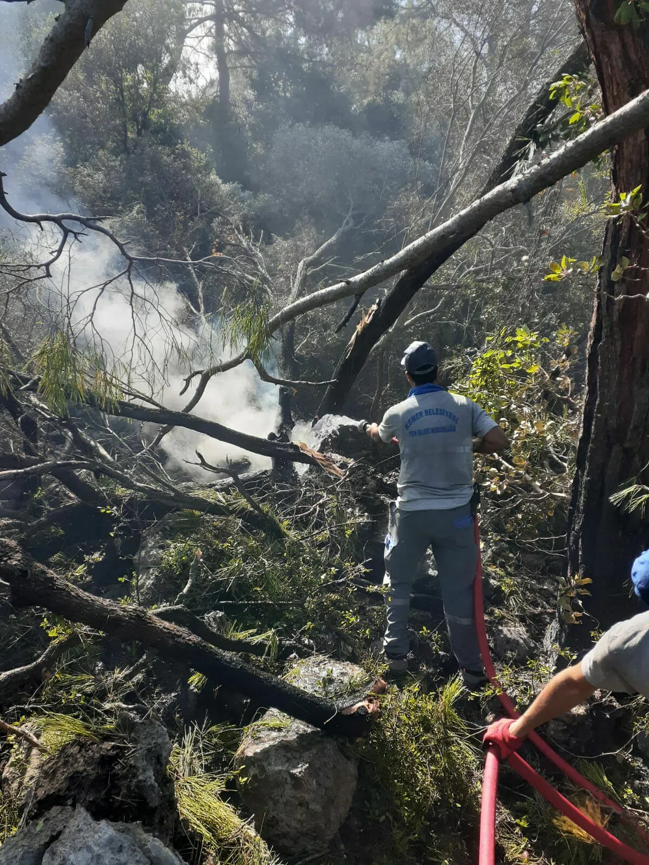 Kemer Belediye Başkanı Necati Topaloğlu, yaptığı açıklamada, hava sıcaklığının düştüğünü ve nem oranının arttığını belirterek, nemin ve dumanın fazla olması nedeniyle 2 helikopterle müdahale edilebildiğini söyledi. Yangına karadan da müdahale edilebilmesi için yolların açıldığına işaret eden Belediye Başkanı Topaloğlu, “Bugün çok umutluyuz. Nem oranı arttı ve sıcaklık biraz düştü. Değirmendere mevkiinin etrafını tüm arazözler çevreledi. İtfaiye ve orman ekipleri yangın hortumlarını hazırladı. Şu anda herhangi bir sıkıntı yok. Nemin olması bize büyük avantaj sağlıyor” dedi.