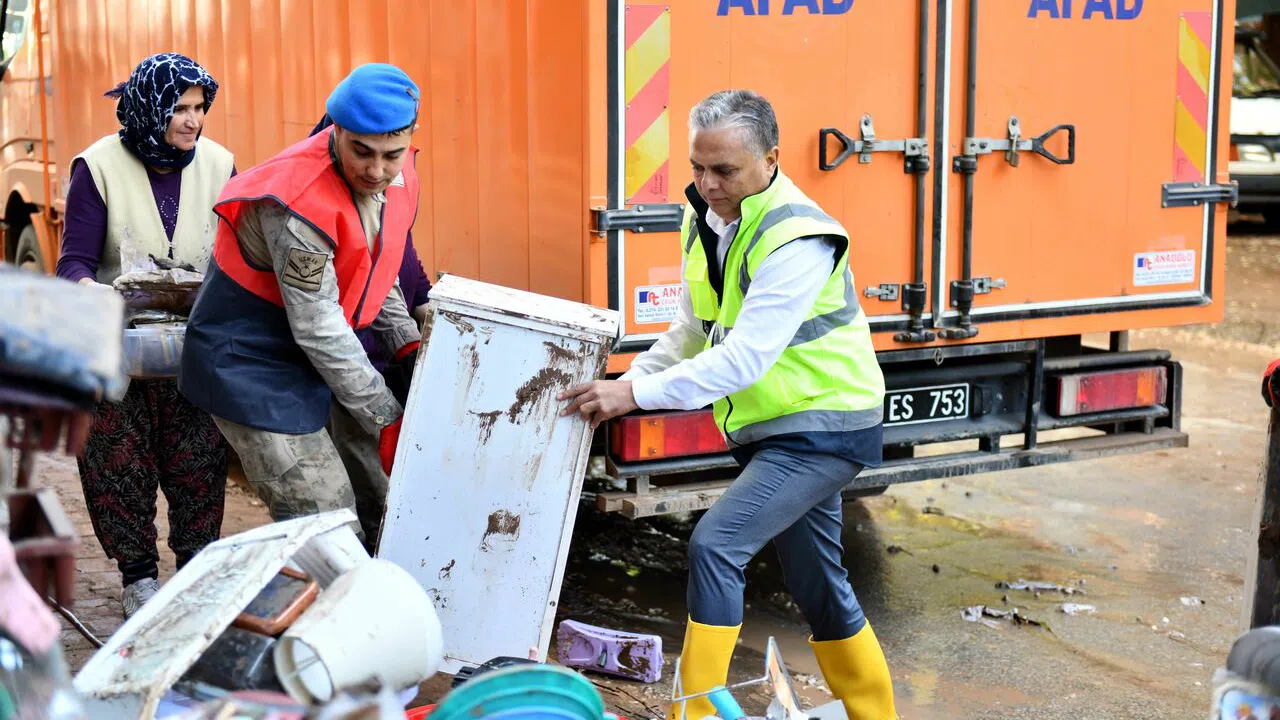 Geceyi sel felaketinin yaşandığı Kumluca’da geçiren Başkan Uysal, günün ilk saatleriyle birlikte ilçede inceleme ve ziyaretlerine devam etti. Esnafa ve vatandaşlara geçmiş olsun dileklerini ileten Başkan Uysal, 108 personel ve aralarında iş makinelerinin de bulunduğu çok sayıda araçtan oluşan Muratpaşa Belediyesi ekiplerinin AFAD, Büyükşehir Belediyesi ve ilgili kuruluşlarla koordineli şekilde sürdürdüğü çalışmaları da inceledi. İncelemeleri sırasında askerlerin selden zarar gören bir esnafın dükkanı boşaltmasıyla karşılaşan Başkan Uysal, Mehmetçiğe yardım etti.