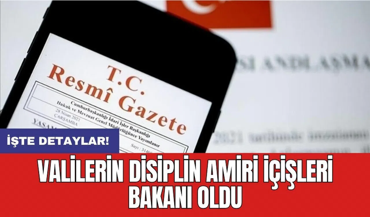 Yönetmelikteki İçişleri Bakanlığı disiplin amirleri cetvelinde yapılan değişiklikle, daha önce bakan yardımcısı olan valinin disiplin amiri Bakan olarak belirlendi.