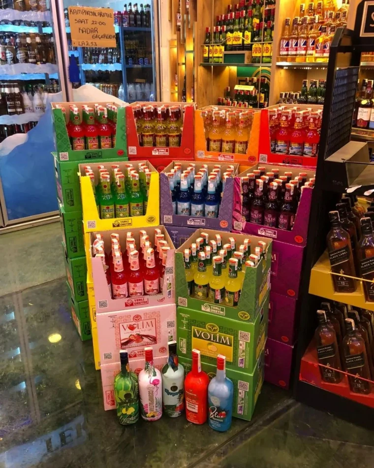 Volim meyveli alkol içeriği 250 ML ile 1 L arasında değişen ML oranlarıyla satılmaktadır.