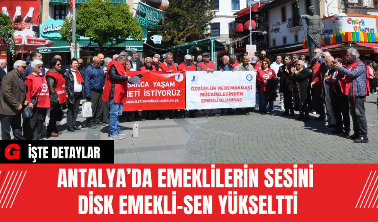 Antalya’da, DİSK Emekli-Sen Antalya Şubesi, emeklilerin geçim sıkıntısı ve diğer sorunlarına dikkat çekmek için bir eylem düzenledi. 23 Mart 2024 Cumartesi günü Attalos Meydanı’nda gerçekleşen eylemde, emeklilerin sesini DİSK Emekli-Sen Antalya Şube Başkanı Seracettin Saraç yükseltti.