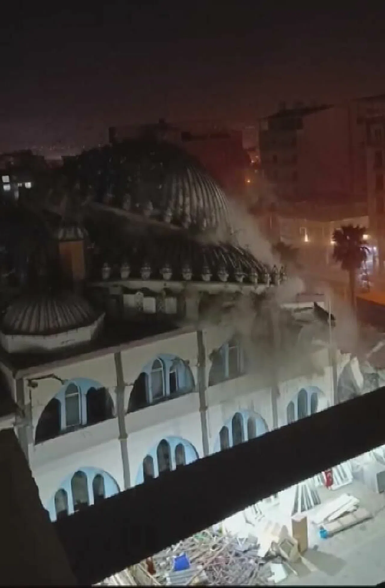 Hatay'ın deprem sonrası en fazla etkilenen bölgelerinden biri olan Kırıkhan ilçesinde, ağır hasarlı olan Merkez Ulucami yıkım esnasında çöktü.