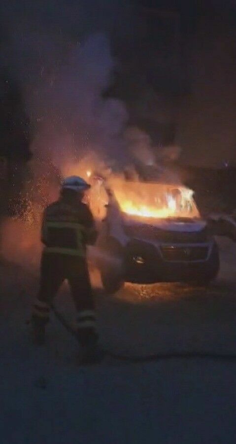 Antakya'nın Küçük Sanayi Sitesi'nde park halindeki bir minibüs, alev alev yanarak kullanılamaz hale geldi. İtfaiye ekiplerinin müdahalesiyle yangın kontrol altına alındı.