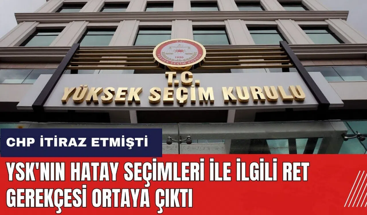 Yüksek Seçim Kurulu’nun (YSK), CHP’nin Hatay ve İskenderun seçimlerine ilişkin ‘tam kanunsuzluk’ gerekçesiyle yaptığı başvuruya yönelik ret kararının gerekçesi açıklandı. ANKA Haber Ajansı'nın ulaştığı kararda, itirazların genel ve soyut olduğu belirtilerek olağanüstü itirazın reddedildiği ifade edildi.