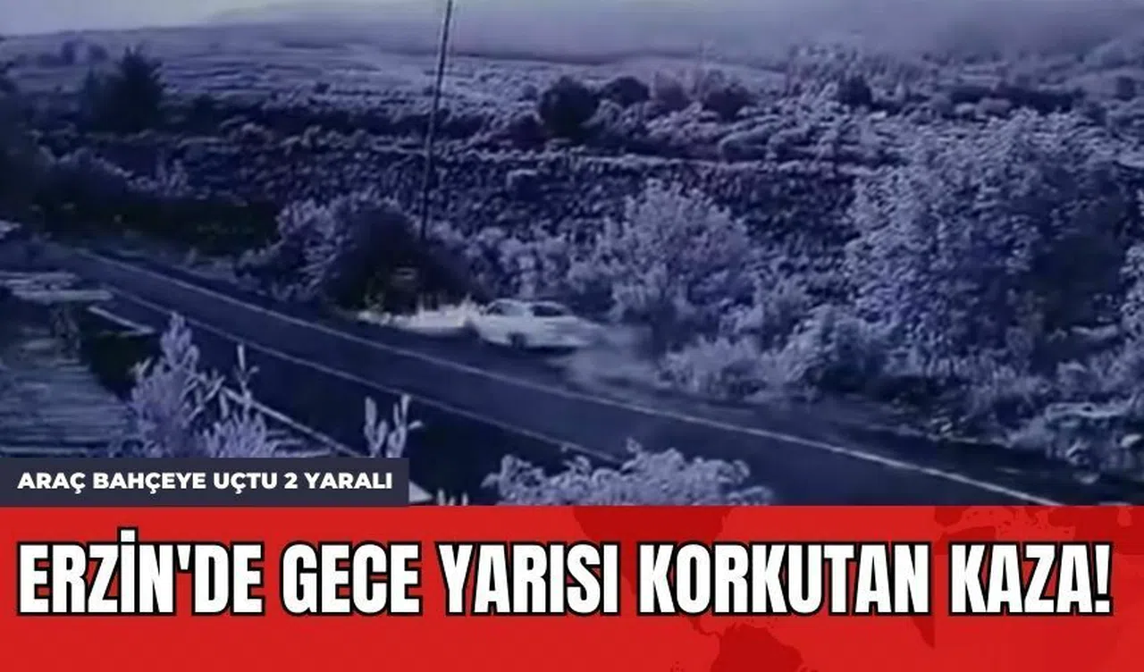 Hatay'ın Erzin ilçesinde gece saatlerinde yaşanan trafik kazasında, sürücüsünün direksiyon hakimiyetini kaybetmesi sonucu 80 HG 414 plakalı otomobil yol kenarındaki bir bahçeye uçtu. Kazada, araç içinde bulunan iki kişi yaralandı. Olay anı güvenlik kamerasına yansıdı.