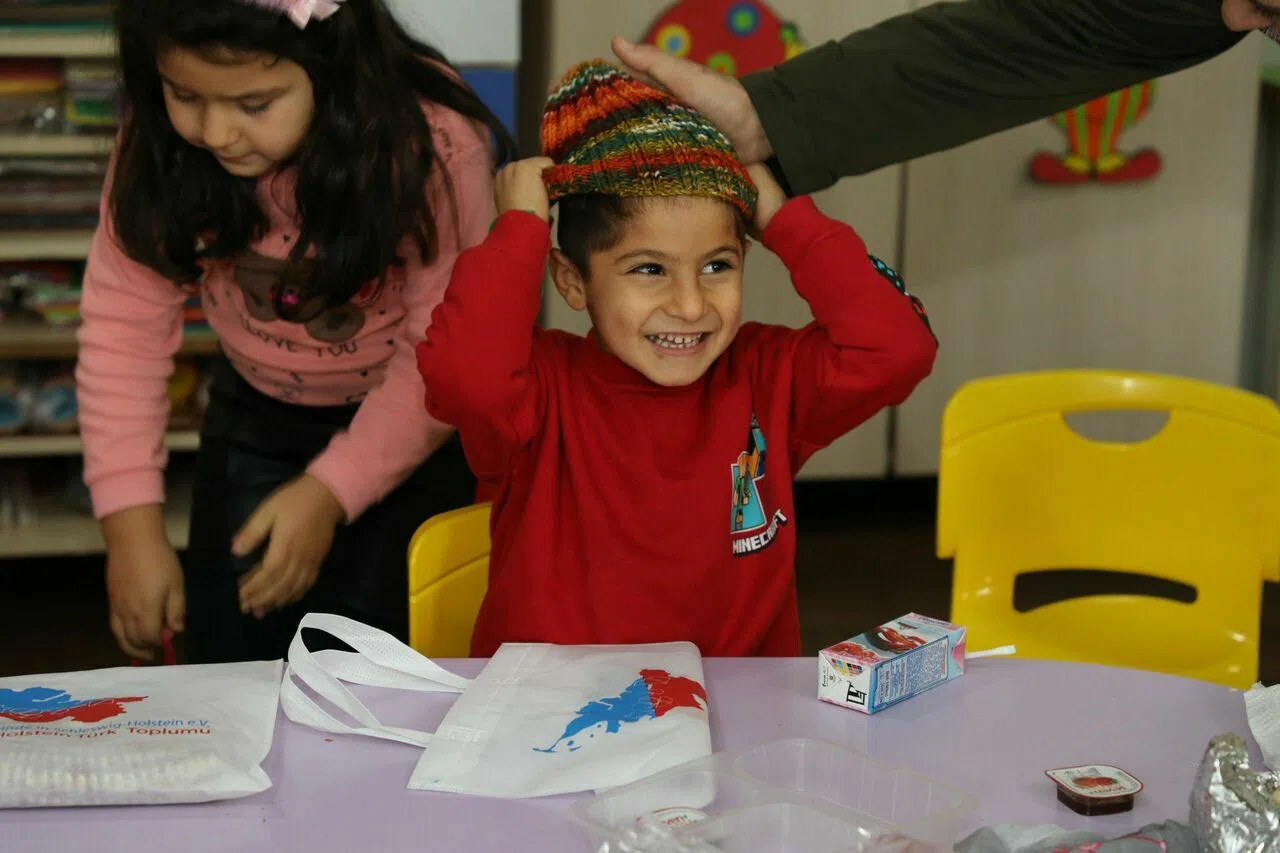 Almanya'daki Schleswig-Holstein Türk Toplumu, 'Sevgiyle Örüyoruz' adlı duyarlılık kampanyasıyla Hatay'daki depremzede çocukları sevindirdi.