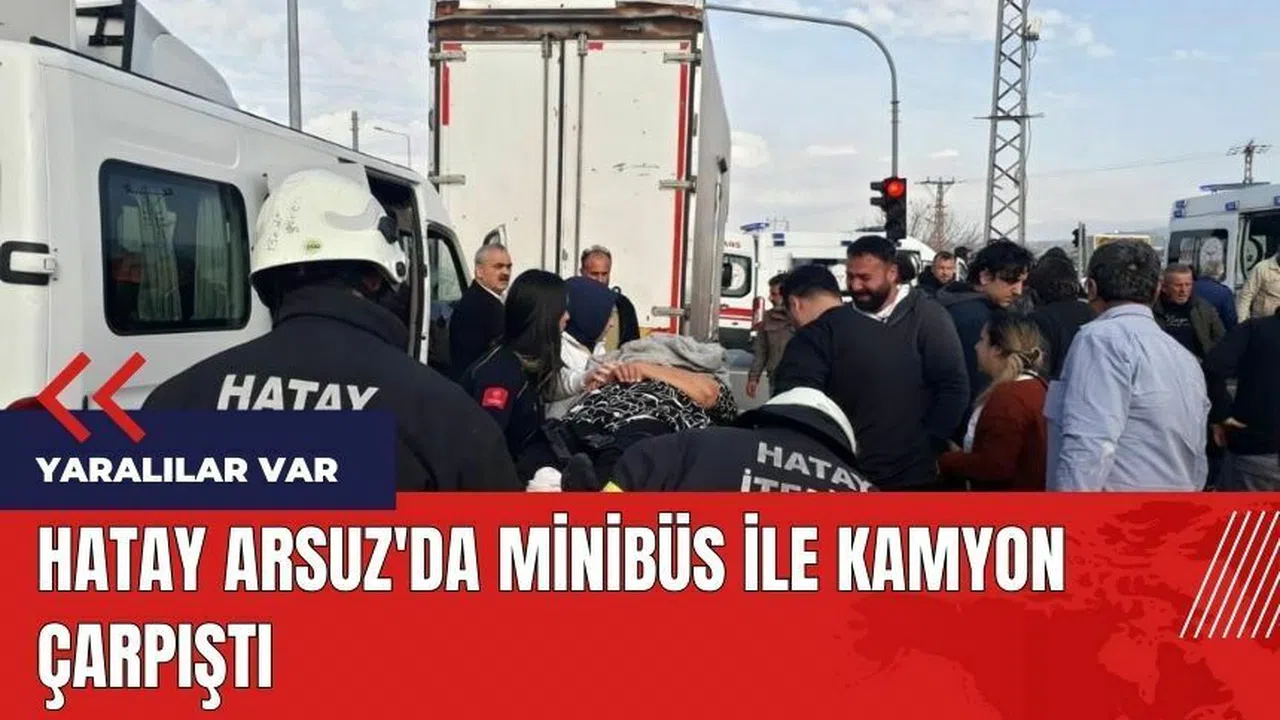 Hatay'ın Arsuz ilçesinde seyir halinde olan minibüs, kamyonla çarpıştı. Yararlılar var.