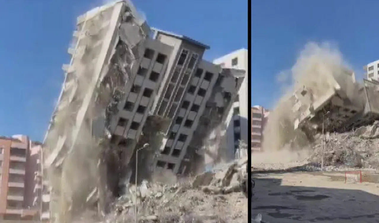 Hatay'da İskenderun'un Çay Mahallesi'nde geçtiğimiz günlerde yaşanan olayın ardından çevresindeki binaların boşaltılmasıyla tedbir alınan 15 katlı bina, çökme riskine karşı kontrollü bir şekilde yıkıldı. O anlar kameraya yansıdı.