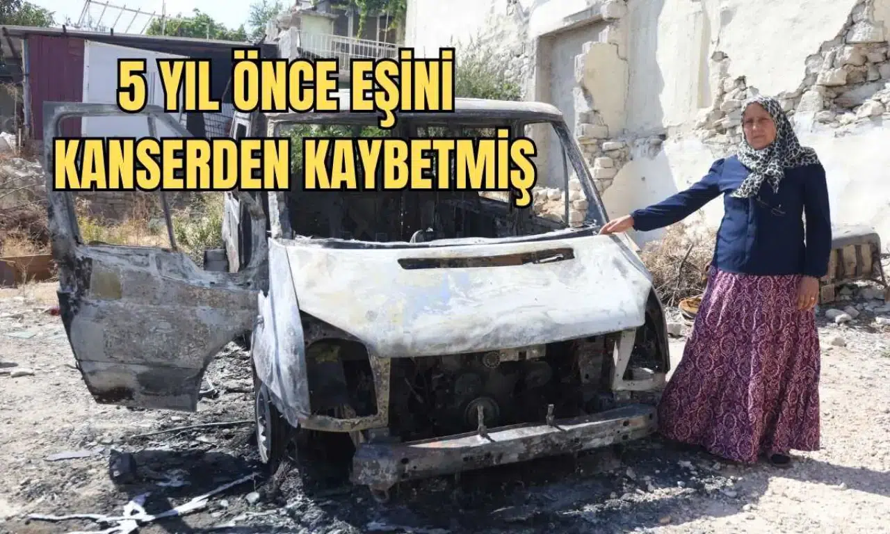 Hatay’ın Altınözü ilçesinde 4 çocuğuyla hayata tutunmaya çalışan 45 yaşındaki Hatice Doğru’nun pazarcılık yaparak geçimini sağladığı minibüsü gece yarısı çıkan yangında kül oldu.