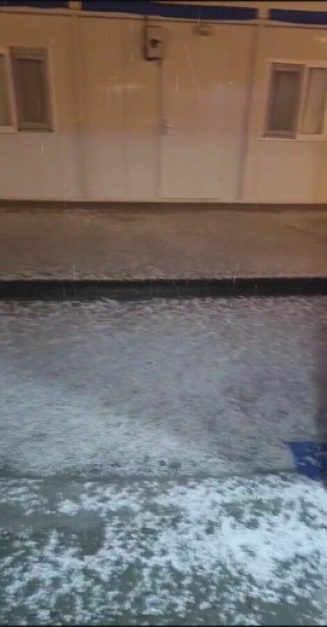 Hatay'da etkili olan dolu yağışı, çevreyi beyaza bürüdü. Arabaların üstleri, sokaklar ve evlerin çatıları, yoğun dolu yağışının ardından beyaz bir tabaka ile kaplandı. Doğa olayının şiddeti, çevredeki insanların dikkatini çekti ve birçok kişi bu anları cep telefonu kameralarıyla kaydetti.
