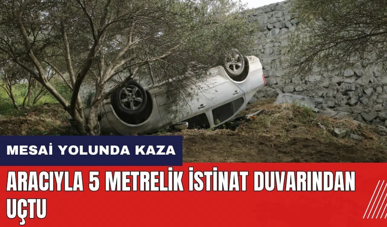 31 AZP 780 plakalı otomobilin sürücüsü olan S.G., aracın direksiyon hakimiyetini kaybetmesi sonucu yaklaşık 5 metrelik bir istinat duvarından uçarak zeytin bahçesine düştü. Kazada, araçta yalnız bulunan sürücü yaralandı.