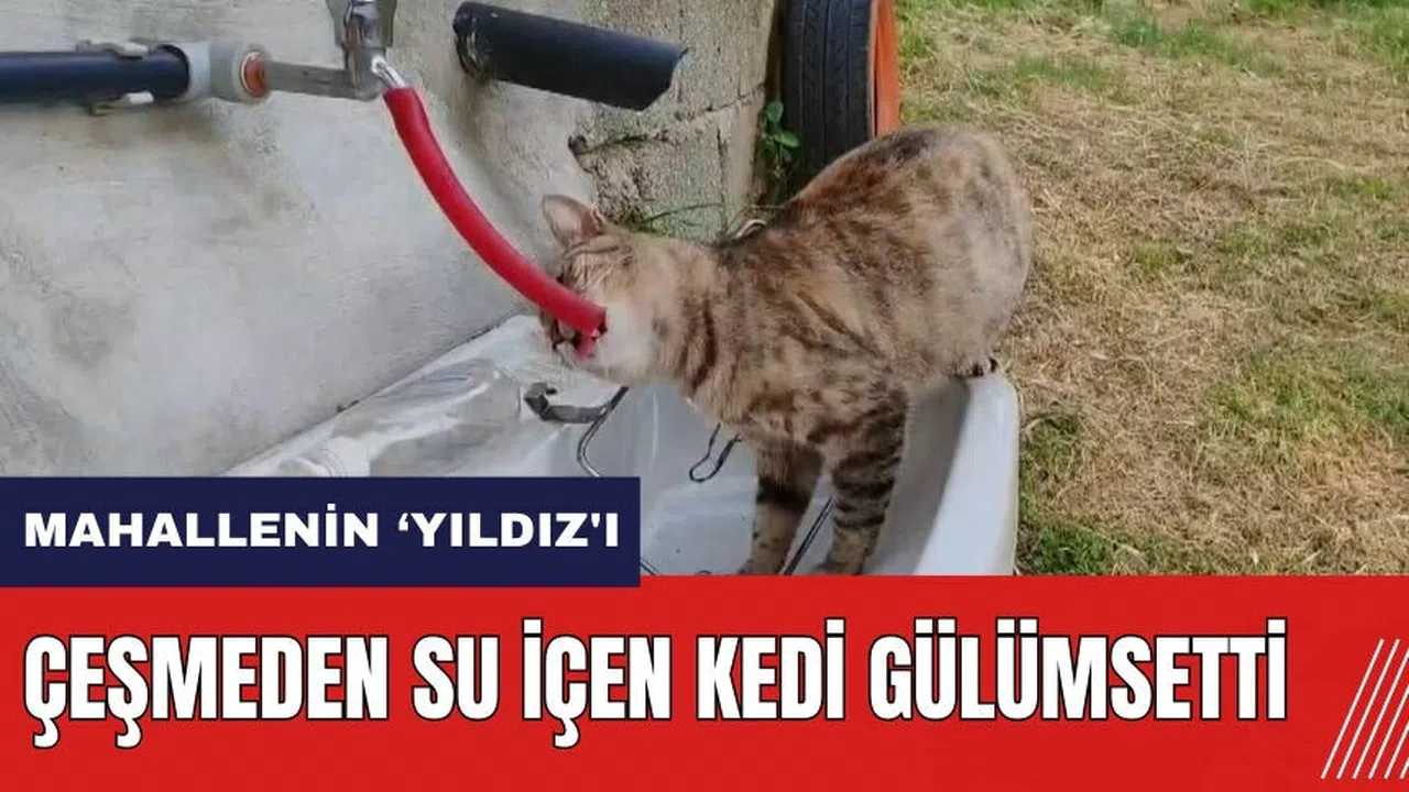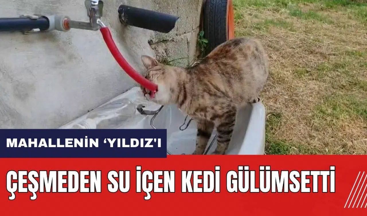Sıcak hava nedeniyle artan su ihtiyacını karşılamak için Sevda Uras'ın kedisi 'Yıldız', çeşmeden su içmeye başladı. Bu durum, çevrede gülümsemelere neden oldu.