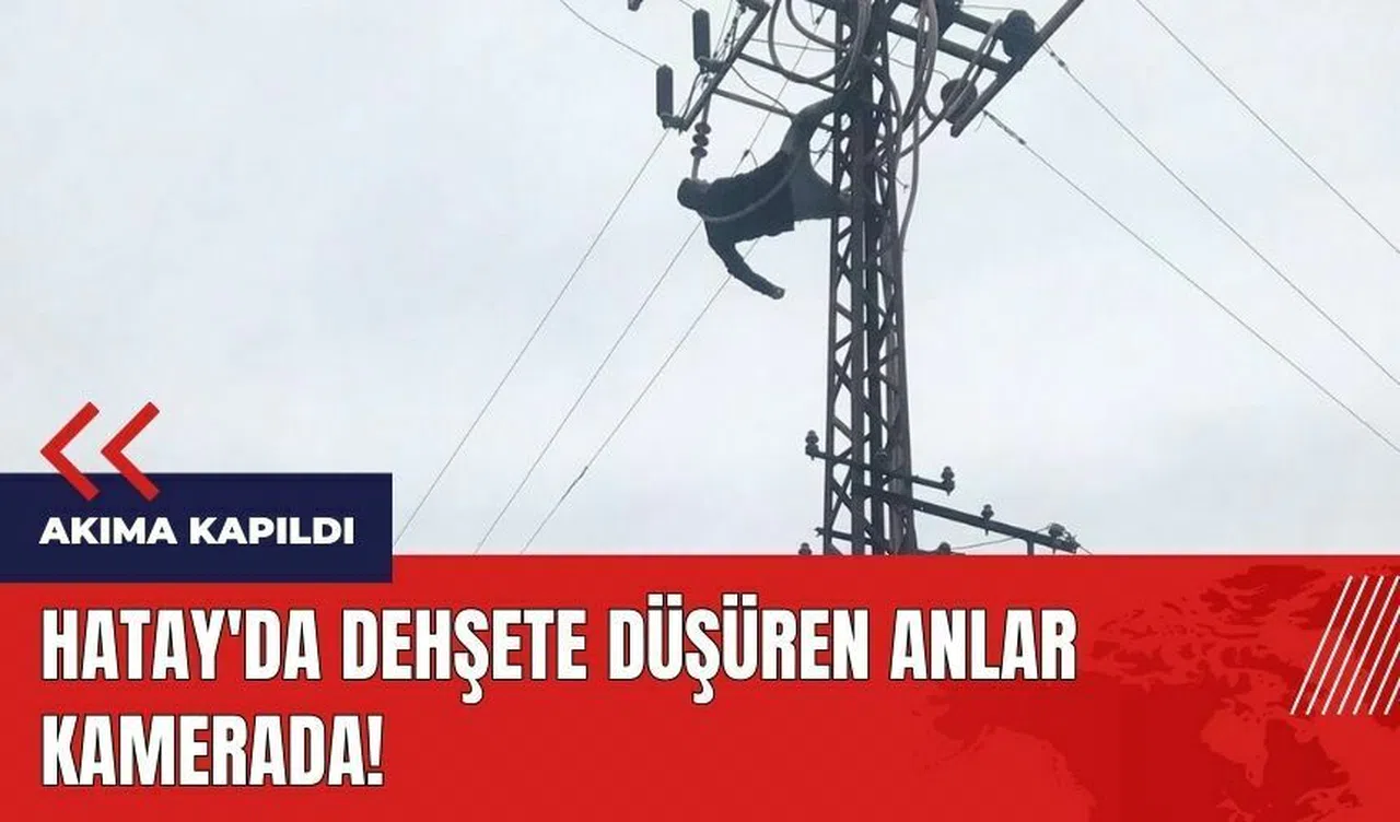 Hatay'da elektrik direğine çıkan kişinin akıma kapıldığı anlar cep telefonu kamerasıyla anbean görüntülendi.