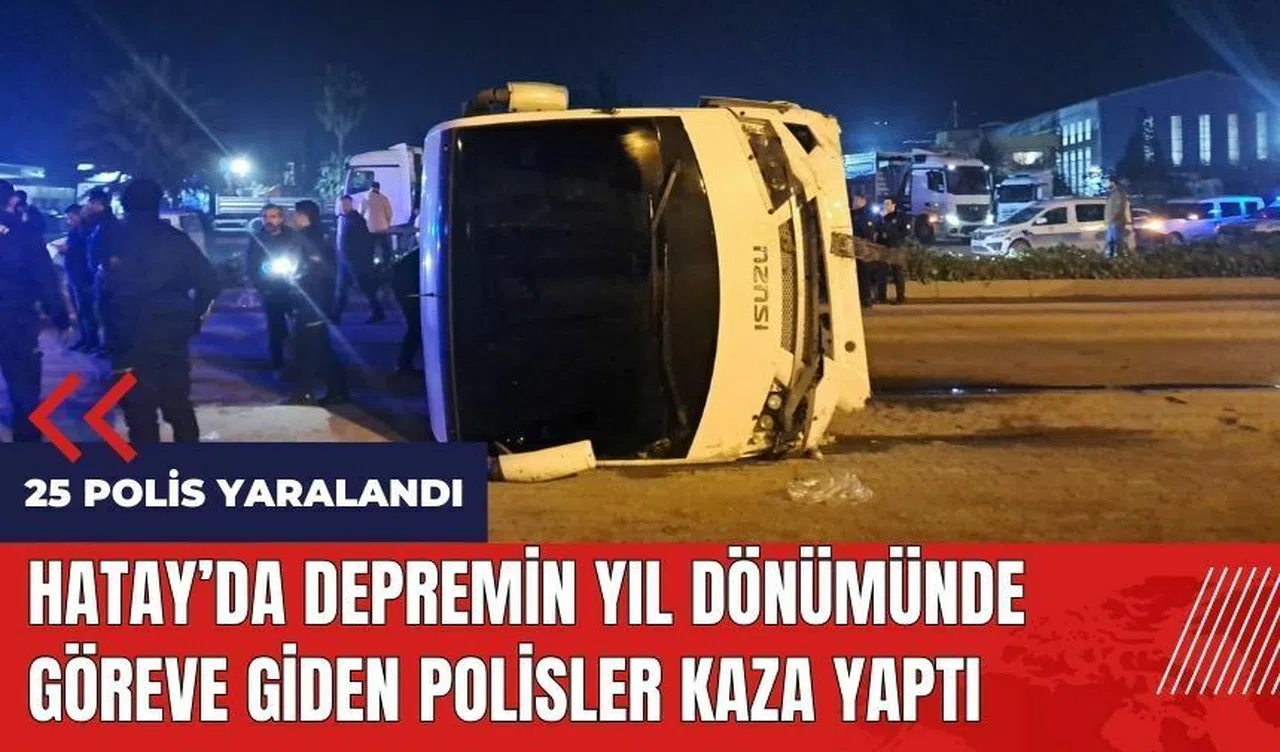 Hatay'ın Dörtyol ilçesinde yaşanan trafik kazasında, depremin yıl dönümü için göreve giden polis ekiplerini taşıyan midibüsün şarampole devrilmesi sonucu 25 polis hafif şekilde yaralandı. Kaza, Payas-Dörtyol arasındaki D91 karayolunda meydana geldi.
