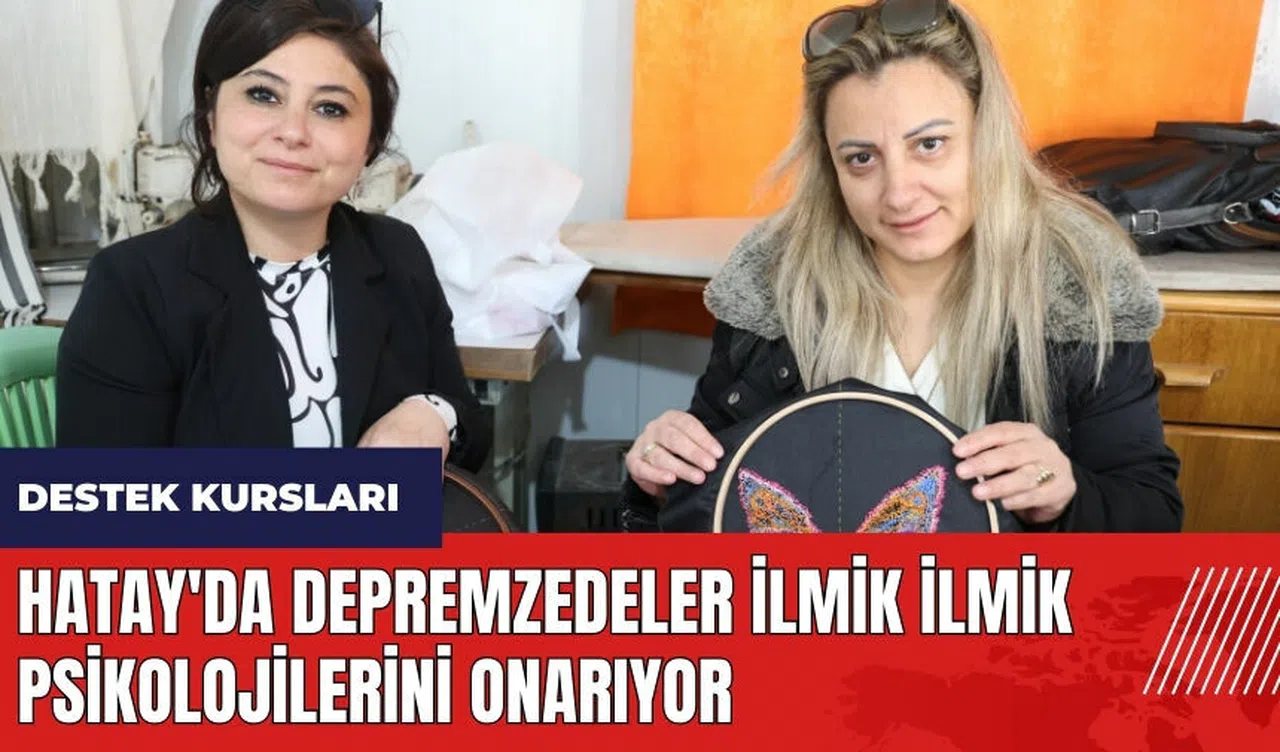 Hatay’ın Antakya ilçesinde, depremin etkilediği 12 kadın, dikiş nakış kursuyla meslek öğrenip, deprem sonrası psikolojilerini toparlıyor.