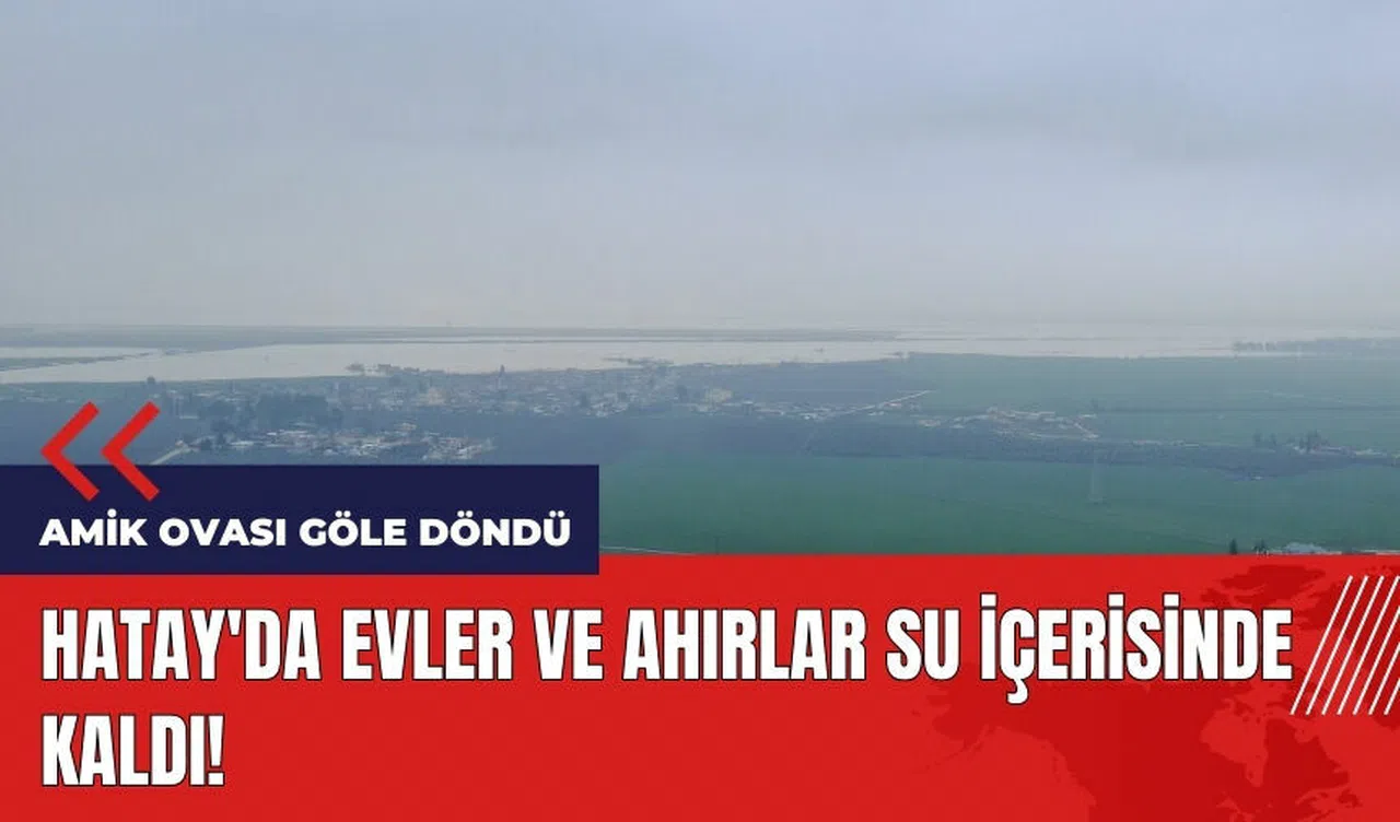 Hatay'da etkili yağışlarla birlikte göle dönen Amik Ovası havzasında bulunan ev ve ahırları su bastı.