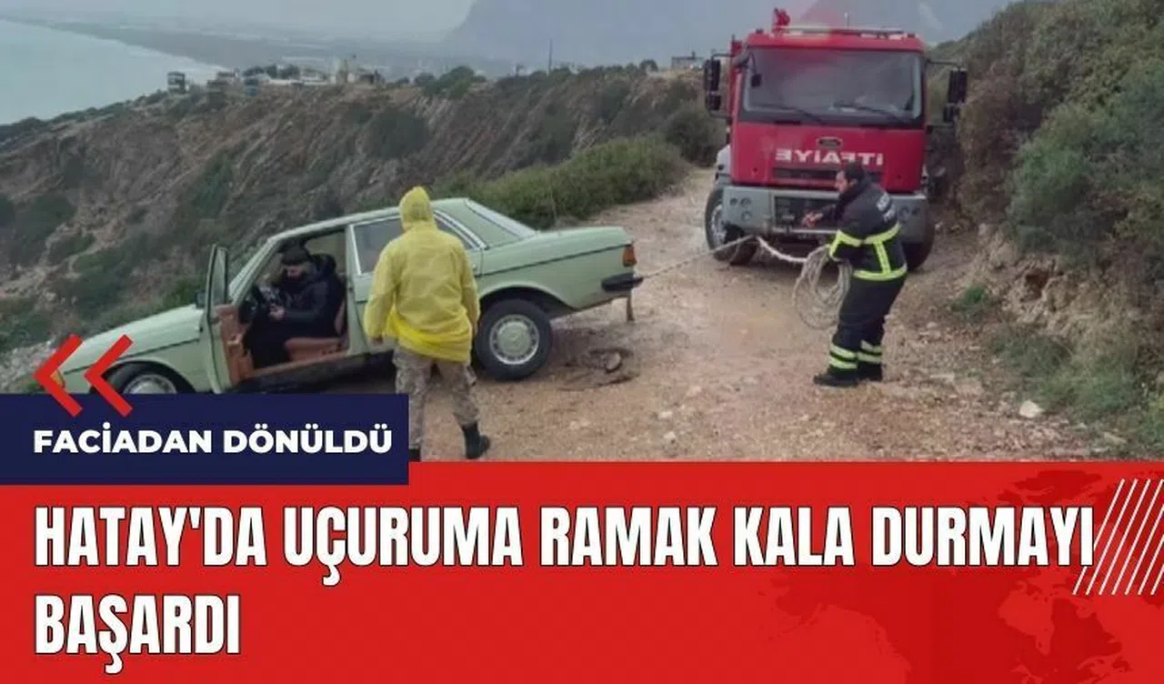 Yayladağı'nın Meydan Mahallesi'nde, yağışlar nedeniyle kayganlaşan toprak yolda seyir halindeki bir otomobil, sürücüsünün direksiyon hakimiyetini kaybetmesiyle uçuruma yuvarlanma tehlikesi atlattı.