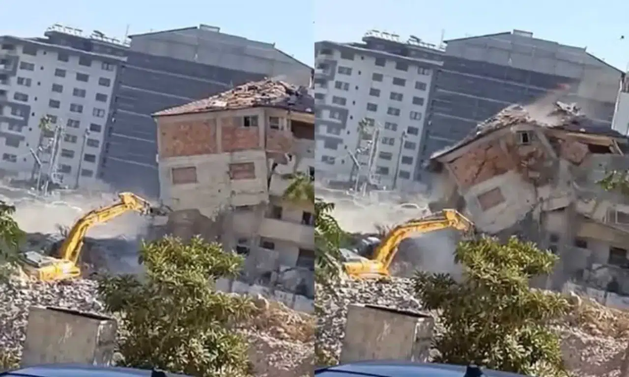 Yıkım sırasında iş makinesinin boomunun binanın altından son anda kurtulduğu anlar cep telefonu kamerasına kaydedildi. Görüntüler, operatörün soğukkanlılığı sayesinde herhangi bir olumsuzluk yaşanmadığını ortaya koydu.