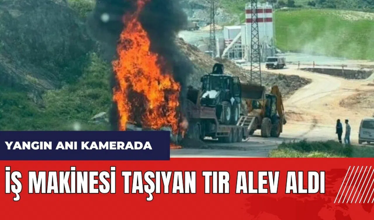 Hatay'ın Antakya ilçesi Kuruyer Mahallesi mevkiinde iş makinesi taşıyan seyir halindeki bir tır, aniden alevlere teslim oldu. Olay anı, çevrede bulunan bir kişi tarafından cep telefonu kamerasıyla kaydedildi.