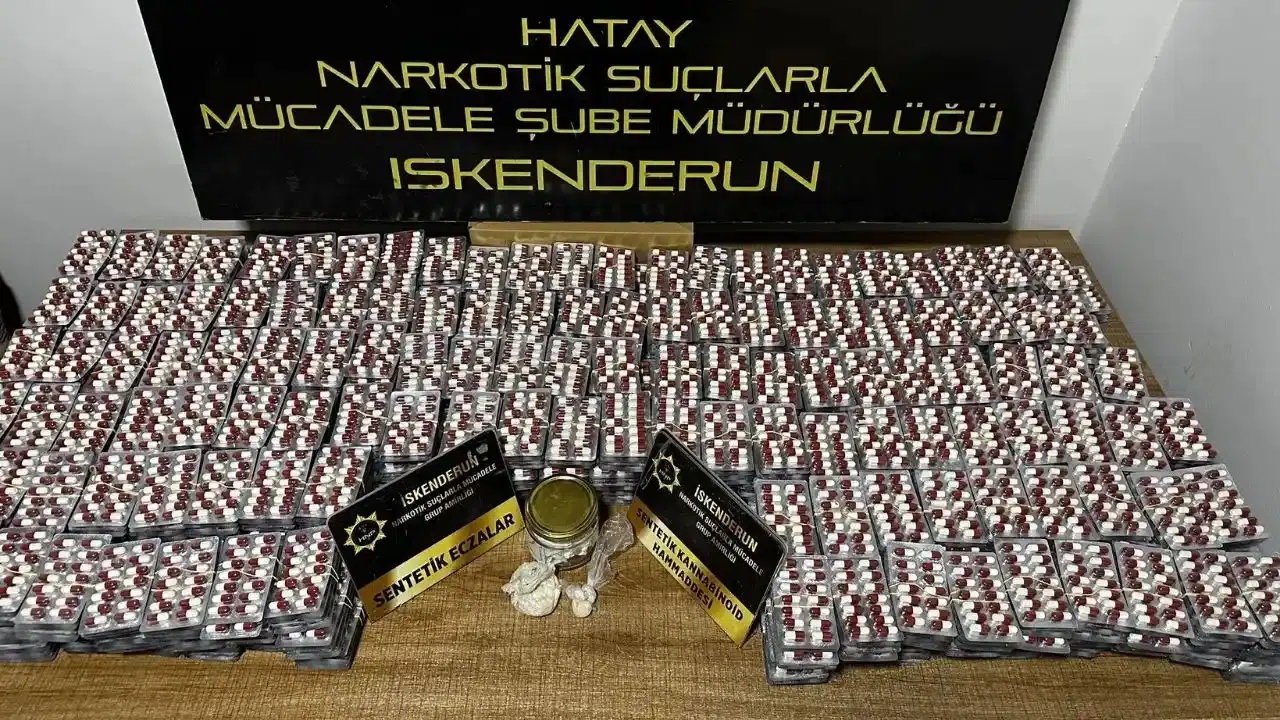 Hatay’ın Arsuz ilçesine bağlı Konarlı Mahallesi’nde tespit edilen bir adrese baskın yapıldı. Yapılan aramada; bin 560 adet uyuşturucu hap, 24,11 gram sentetik Kannabinoid ele geçirildi.