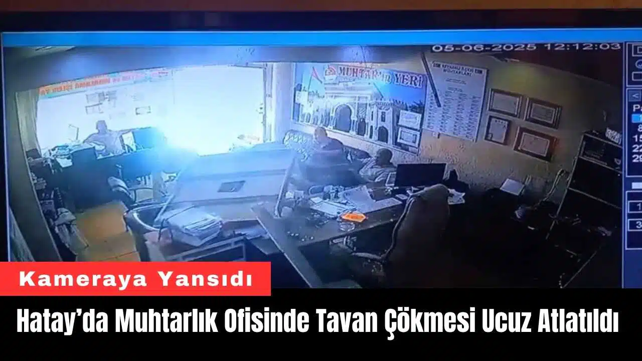 Olay, Reyhanlı ilçesi Yeni Mahalle Muhtarı Sedat Sakin’in çalışma ofisinde meydana geldi. Muhtar Sakin ve yanında bulunan iki kişinin oturduğu sırada tavandan gelen bir sesle birlikte, avizenin monte edildiği asma tavan bir anda çöktü. Çökme anı, ofisin güvenlik kamerasına yansıdı. Olayda can kaybı ya da yaralanma yaşanmadı ancak kısa süreli panik meydana geldi.