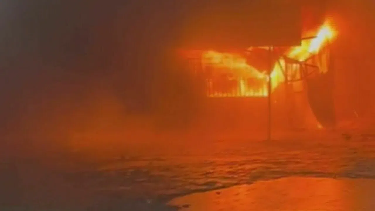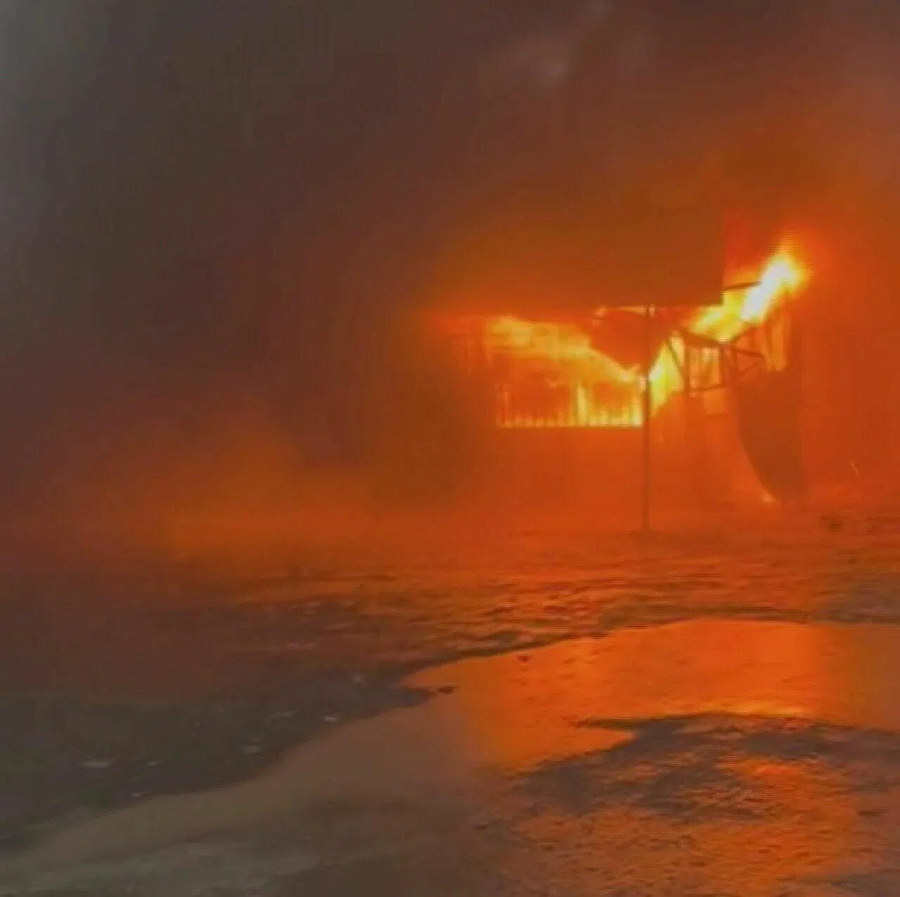 Hatay'ın Antakya ilçesinde, Haraparası Mahallesi'nde bulunan bir prefabrik iş yerinde çıkan yangın, cep telefonu kamerasına yansıdı.