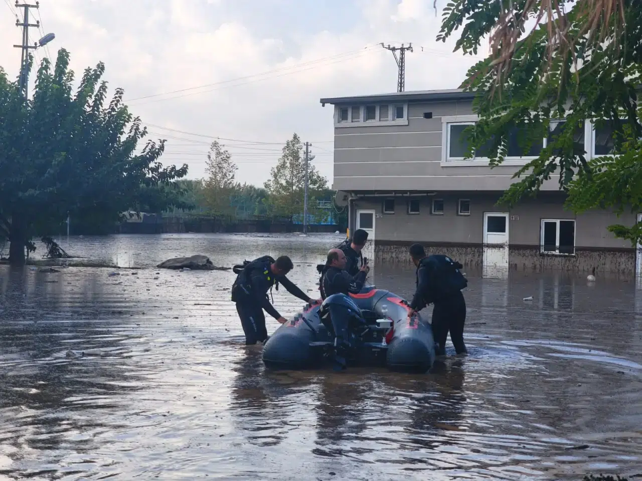 Yoğun yağışın etkisiyle Payas ilçesi Karacami Mahallesi’nde evlerinde mahsur kalan vatandaşlar, Hatay Büyükşehir Belediyesi’ne bağlı itfaiye ekipleri tarafından kurtarıldı. Botlarla evlere ulaşan ekipler, mahsur kalan vatandaşları güvenli bölgelere tahliye etti.