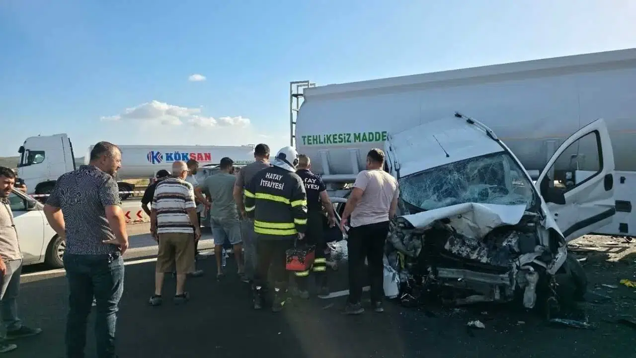 Hatay’ın Erzin ilçesinde, İskenderun - Adana otoyolu üzeri serbest bölgede seyir halindeki FİA marka hafif ticari araç, tankerle çarpıştı. Çarpışmanın etkisiyle araç hurdaya dönerken, araçtaki 3 kişi yaralandı.