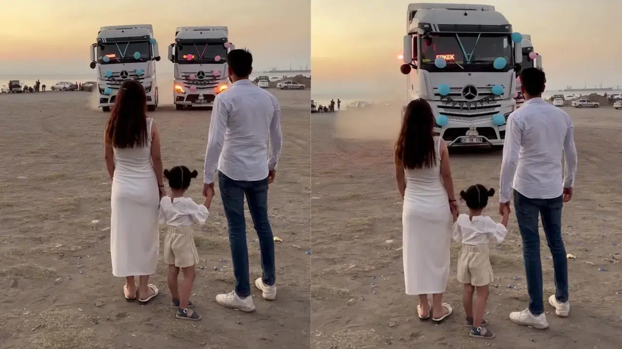 Çevik ailesi ve meslektaşları, iki tır hazırladı. Birine “erkek”, diğerine “kız” yazıldı. Araçlar süslenerek aynı anda hareket etti. Kornalar eşliğinde öne geçen “erkek” yazılı tır, aileye bebeklerinin cinsiyetini açıkladı. Bu anlar hem çiftin hem de çevredeki kalabalığın büyük coşkusuna sahne oldu.