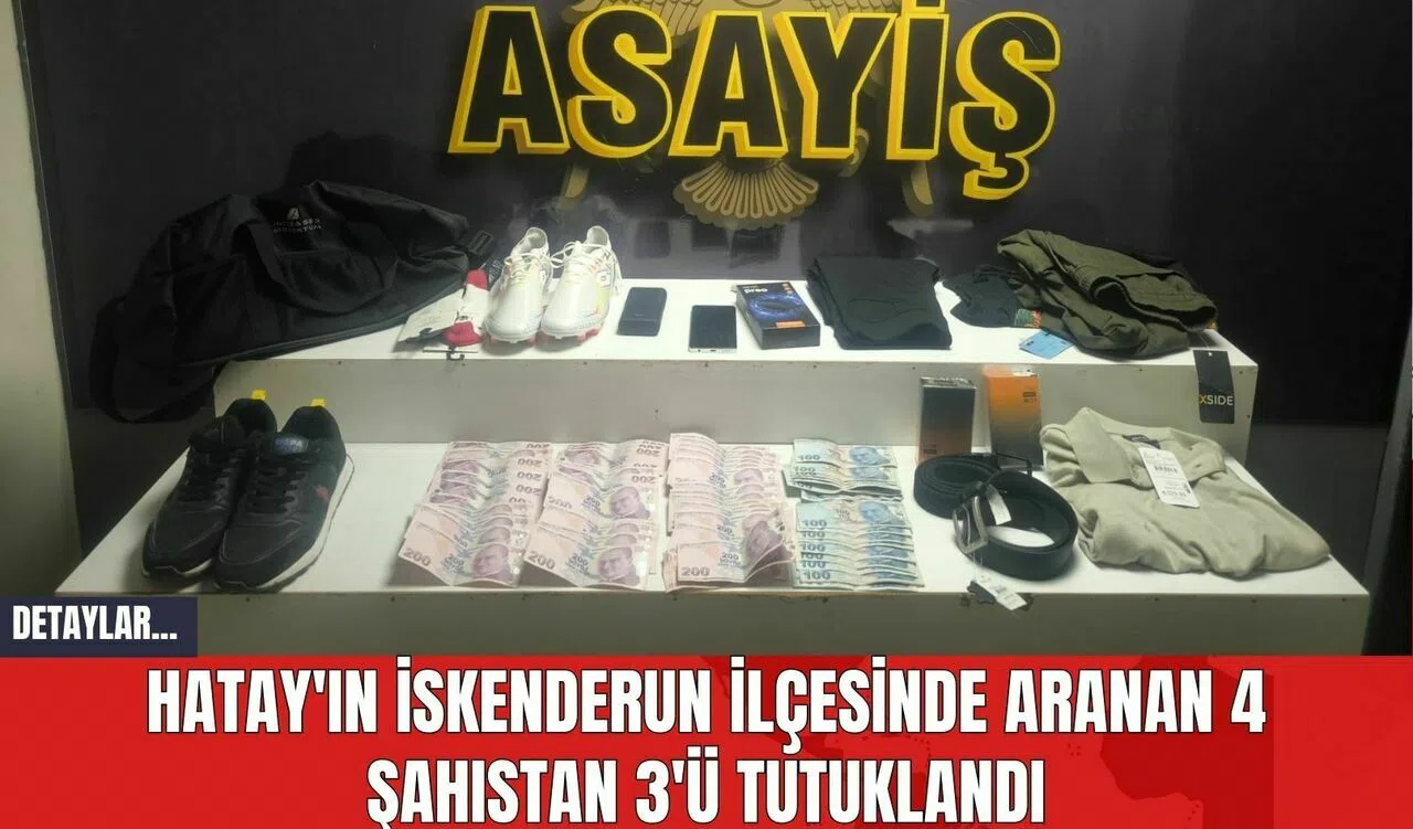 Hatay Emniyet Müdürlüğü ekipleri, aranan şahısların yakalanması için çalışmalarını sürdürüyor. Bu çerçevede İskenderun ilçesinde hükümlü veya tutuklunun kaçması suçundan aranan M.B., hırsızlık suçundan 3 yıl 6 ay hapis cezasıyla aranan İ.E., görevi yaptırmamak için direnme suçundan 6 ay 7 gün hapis cezasıyla aranan H.İ.Ö. ve 5 ayrı işyerinden hırsızlık olayının şüphelisi Y.Y. 8 Haziran günü yakalanarak gözaltına alındı.