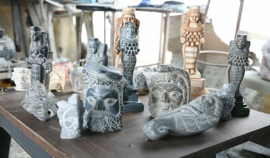 Hatay'ın Defne ilçesinde yaşayan 55 yaşındaki Ali Özalp, babasından devraldığı taş oymacılığı mesleğini modern tekniklerle birleştirerek hem geleneği yaşatıyor hem de ailesinin geçimini sağlıyor. Bu mesleği babasından öğrenen ve makineleşmeyle üretimi arttıran Özalp, serpantin taşını işleyerek yaptığı eserleri sanat eserine dönüştürüyor. Özalp’ın özenle ve ustalıkla ürettiği eserler 500 dolardan başlayan fiyatlarla alıcı buluyor.