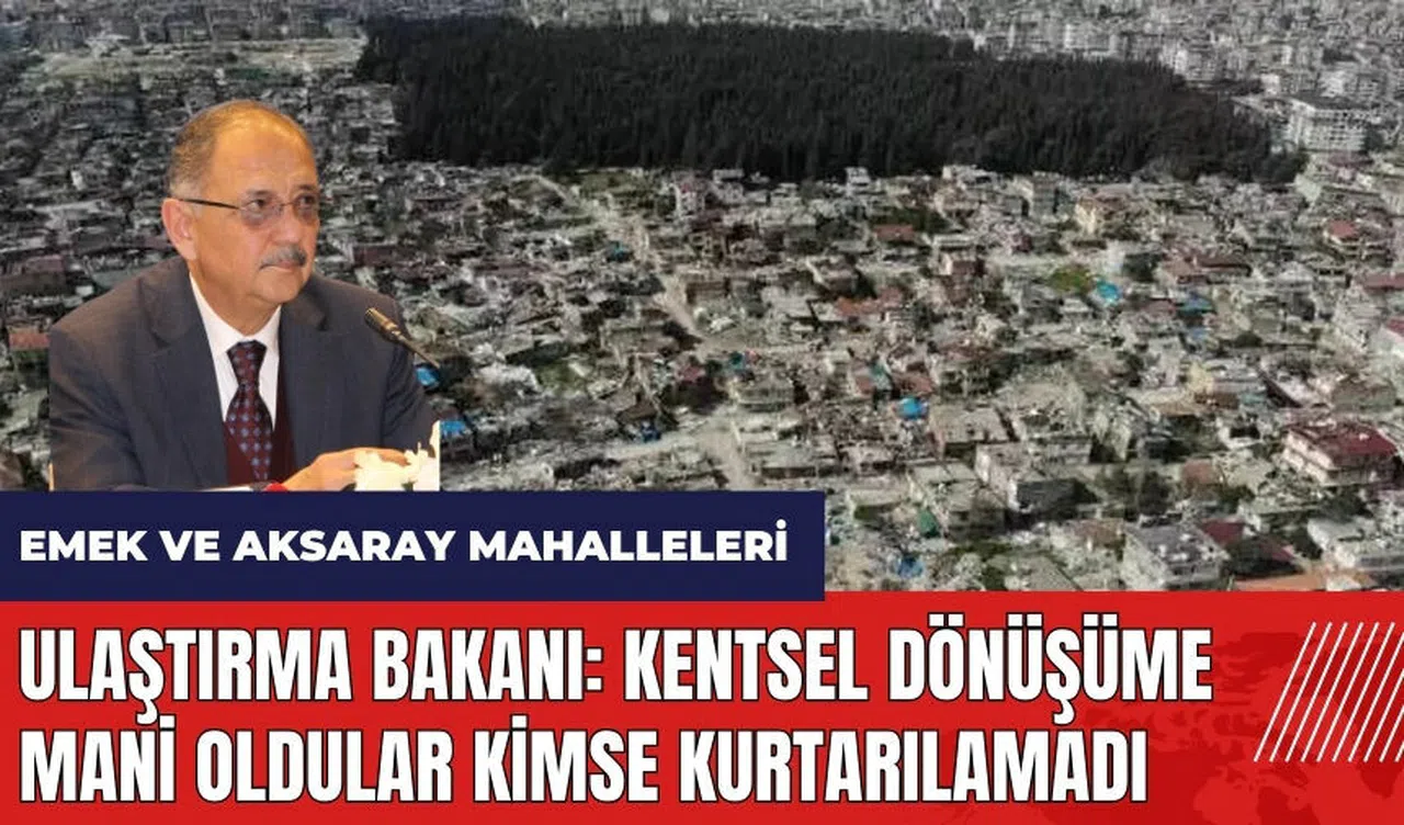 Trabzon'da 'Sektör Temsilcileri Buluşması'na katılan Çevre, Şehircilik ve İklim Değişikliği Bakanı Mehmet Özhaseki, Hatay’daki Emek ve Aksaray Mahallesi'nde planlanan kentsel dönüşüm projesine örgütlerin direniş gösterdiğini söyleyerek, 'Şimdi vicdanınız rahat mı?' diye seslendi.