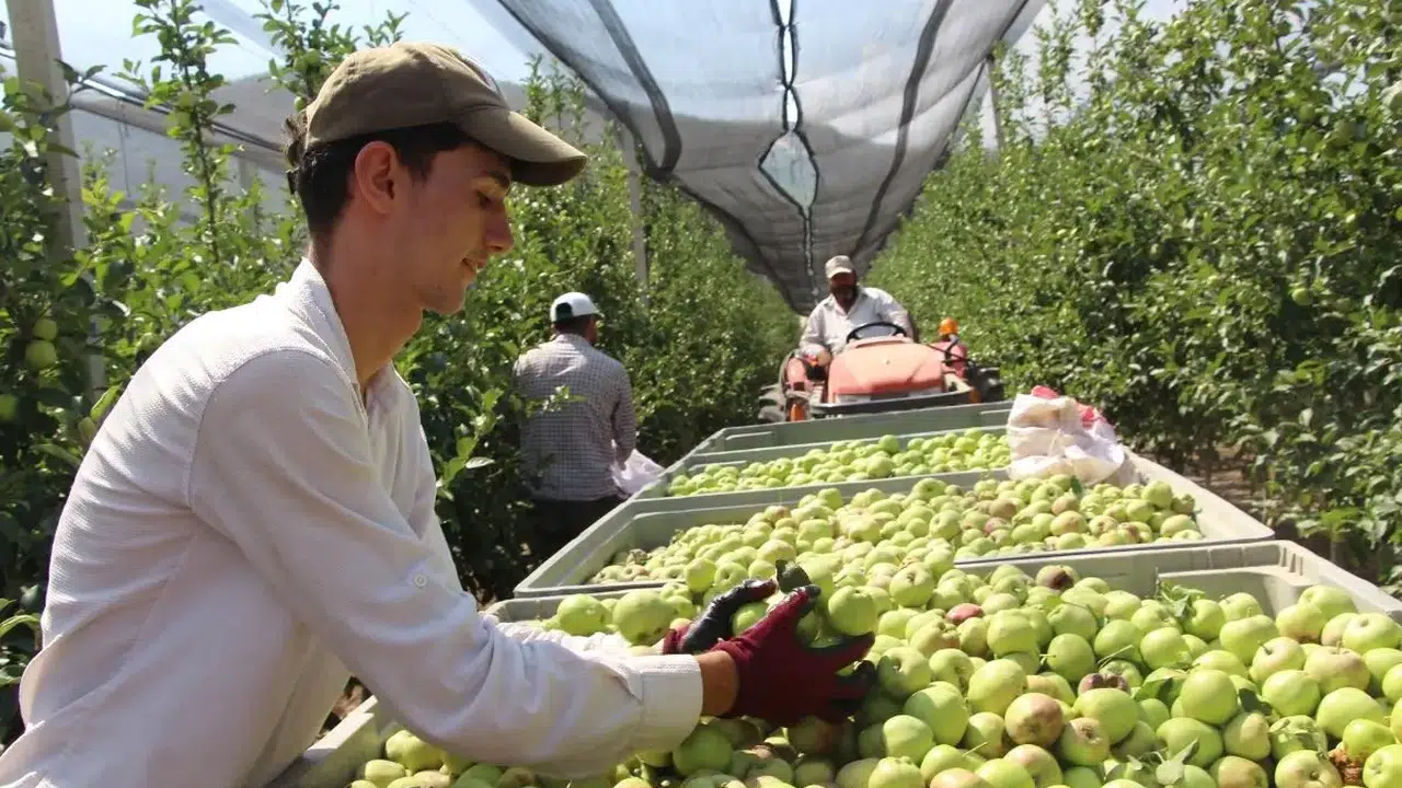 Selçuk, "Elma bahçelerimizde seyreltme ve tekleme dediğimiz, yetişmeyecek ve büyümeyecek olan kara lekelilerin küçük makaslarla ayrıldığı verim uygulaması yapılıyor. Eylül ayının 15'i gibi sezonumuz başlar. Yaklaşık kasım sonuna kadar devam eder. Malum bu yıl ülkemizde bir don hadisemiz oldu. Elmamızda yüzde 30'luk kaybımız var. Geçen yıl 1 milyon 250 bin ton civarında rekoltemiz olmuştu. Bu yıl da yaklaşık 900 bin ton civarında rekolte bekliyoruz. Bu yıl don hadisesi sebebiyle marketlerdeki fiyatlar geçen seneye göre biraz daha yüksek olacaktır" açıklamasını yaptı.
