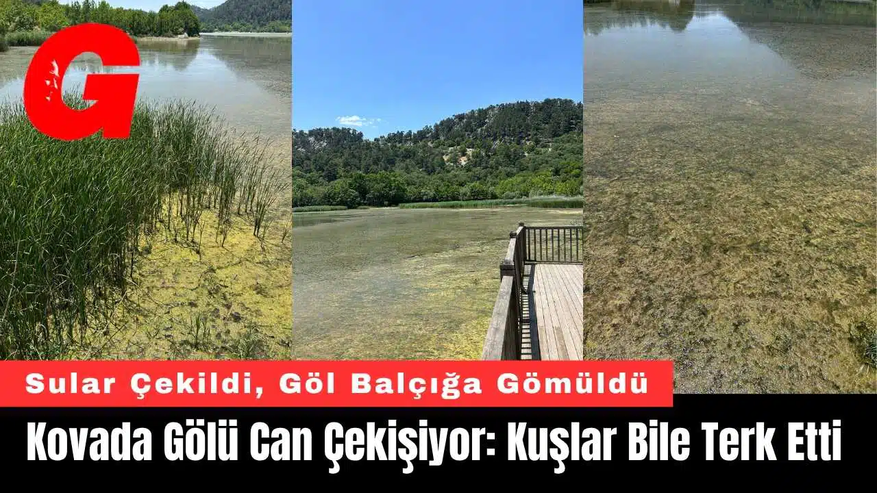 Gölde su seviyesi neredeyse yarı yarıya azalmış durumda. Göl kıyısında biriken balçık, göl yüzeyini kaplamış; sazlıklar bakım eksikliği nedeniyle kontrolsüzce yayılmış. En ürkütücü detay ise yıllardır Kovada’nın simgesi olan kuşların artık neredeyse hiç görünmemesi.