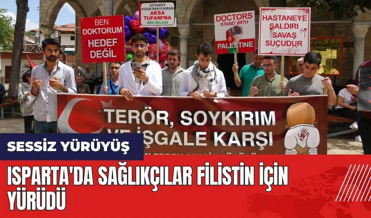 Isparta'da hekimler, sağlık çalışanları ve sivil toplum kuruluşları, Filistin'e destek amacıyla bir araya gelerek 'Sessiz Yürüyüş' gerçekleştirdi. Kaymakkapı Meydanı'ndaki Gazze nöbet çadırı önünde toplanan kalabalık, Mimar Sinan Camii'ne kadar sessiz bir yürüyüş yaptı.