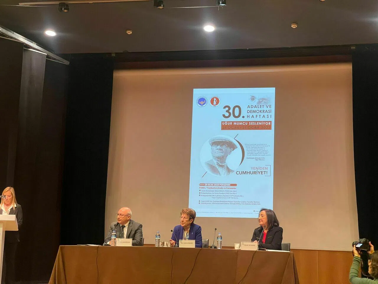 30. Adalet ve Demokrasi Haftası dolayısıyla Uğur Mumcu Araştırmacı Gazetecilik Vakfı (UMAG) öncülüğünde Türk Kadınlar Birliği (TKB) ve Türk Üniversiteli Kadınlar Derneği (TÜKD) işbirliği ile Ankara’da Çankaya Sanat Merkezi’nde “Yeniden Cumhuriyet” temasıyla “Cumhuriyet, Kadın ve Kazanımlar” paneli gerçekleşti. 26 Ocak Perşembe günü yapılan panelde CHP Eskişehir Milletvekili Utku Çakırözer, CHP Parti Meclis Üyesi Yaşar Seyman ve TÜKD Genel Başkanı Meral Güler konuşmacı olurken, TKB Genel Başkanı Sema Kendirci Uğurman da paneli yönetti.