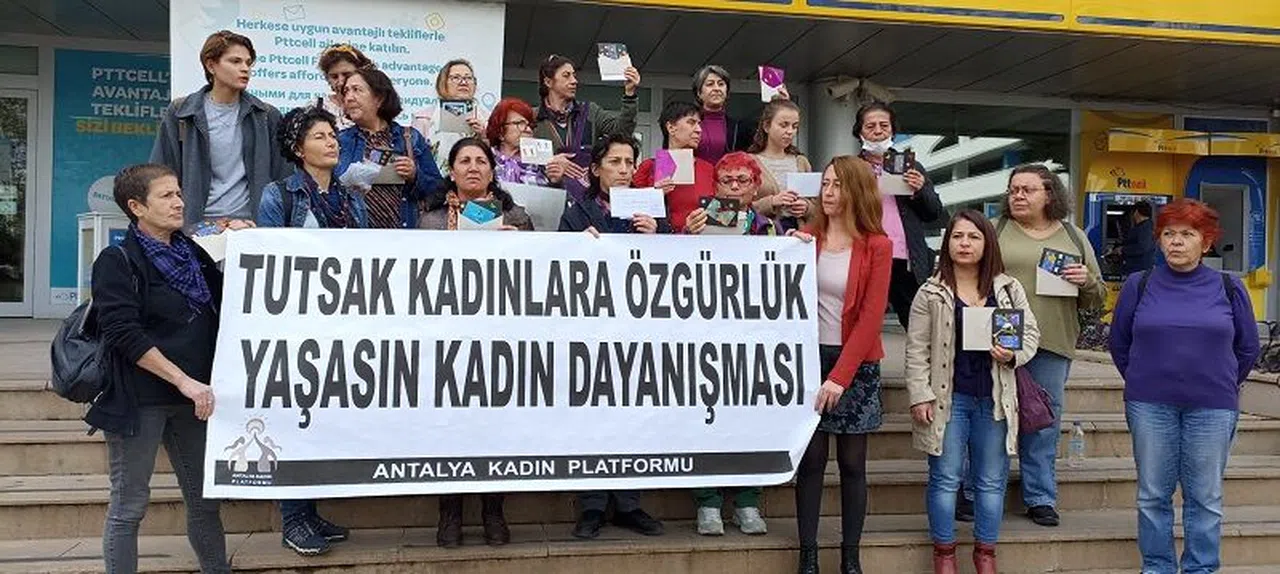 Antalya Kadın Platformu adına basın açıklamasını okuyan İmece Kadın Sendikası Şube Başkanı Münire İnal, “25 Kasım Kadına Yönelik Şiddete Karşı Uluslararası Mücadele ve Dayanışma Günü, insanlık tarihinde kadınlara yönelen vahşi bir şiddetin, bir insanlık ayıbının tarihi olduğu gibi, esas olarak kadınların erkek egemen sisteme karşı mücadelesini ve dayanışmayı yükselttiği tarihtir. Özgürlükleri elinden alınmış tutsak kadınlara dayanışma amacıyla kartlarımızı, mektuplarımızı kız kardeşlerimize ulaştırmak için buradayız. Vardık, varız, var olacağız. Sömürüsüz, şiddetsiz, eşit ve özgür yaşamı birlikte kuracağız. Hep birlikte yaşamlarımızı ve dünyayı değiştirmeye, özgürleştirmeye diyoruz ve tüm kadınları 27 Kasım Pazar günü saat 14.00’da Aydın Kanza Parkı’nda toplanıp Yavuz Özcan parkına yürümeye, mücadelemizi büyütmeye bekliyoruz” dedi.