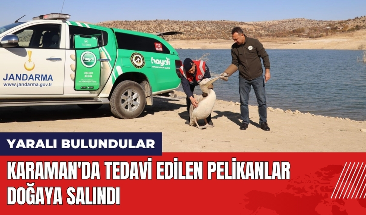 Karaman'da İl Jandarma Komutanlığı Çevre, Doğa ve Hayvanları Koruma ekipleri, merkeze bağlı Boyalı köyü ve Ayrancı ilçesi Höyükburnu köyü yakınlarında yaralı halde 2 pelikan buldu.