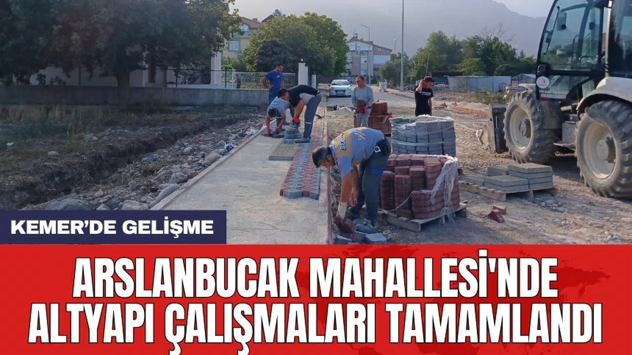 Kemer Belediye Başkanı Necati Topaloğlu, yaptığı açıklamada, “Arslanbucak Mahallemizde altyapı çalışmalarını tamamladığımız 228 ve 249 sokaklarda yol çalışmalarına başlandı. Yol yapım çalışmalarımız kapsamında, 3000 metrekare reglaj, 1280 metre bordur, 1200 metrekare kaldırım, 2100 metrekare yol kaplama yaptık. En kısa sürede çalışmalarımızı tamamlayarak halkımızın kullanımına kazandıracağız” dedi.