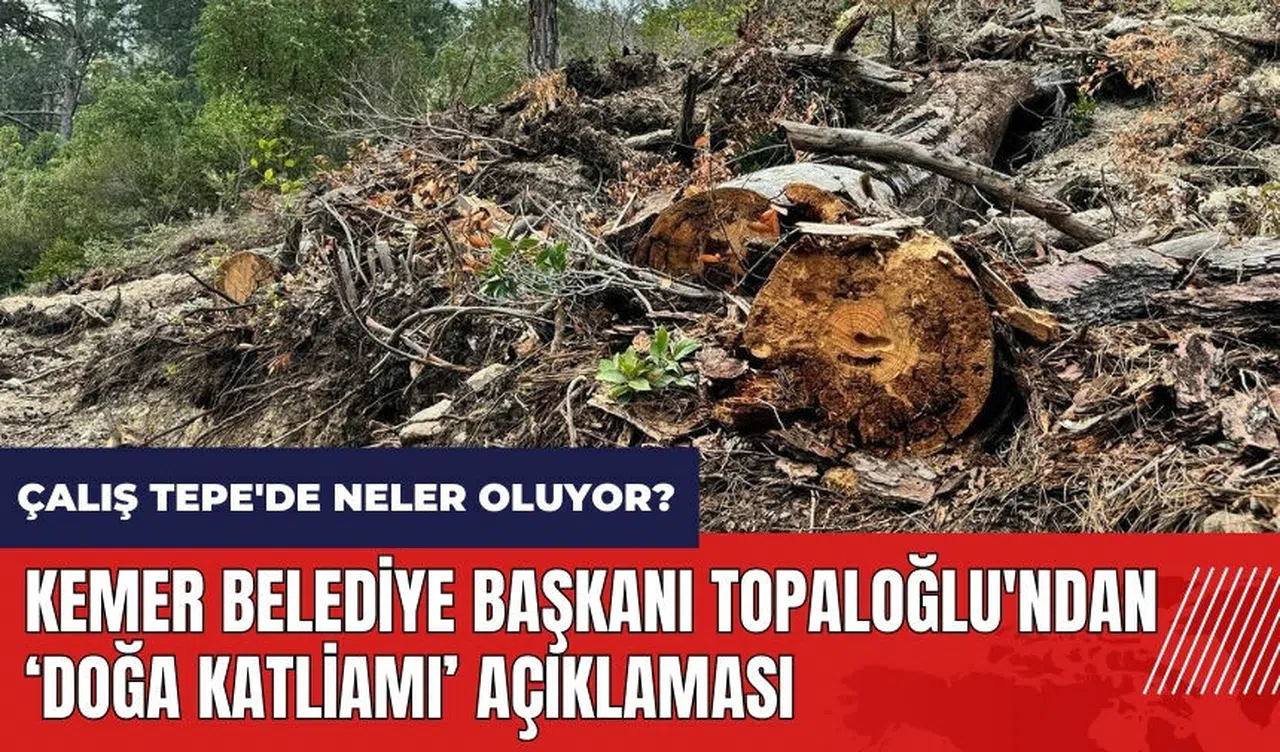 Kemer’in en önemli noktaları arasında yer alan Çalış Tepesi'nde yapılan doğa katliamı ile ilgili sosyal medyadan açıklama yayınlayan Kemer Belediye Başkanı Topaloğlu, 'Çalış tepesinde yapılan doğa katliamı ve bu noktada yapılması planlanan her ne ise Kemer Belediyesi olarak karşısında olduğumuzu ve sonuna kadar takipçisi olacağımızı belirtmek isteriz.' dedi.