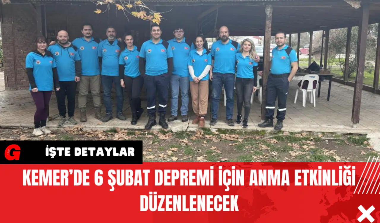 Anma etkinliği, Kemer Belediyesi Kültür Salonu’nda 6 Şubat Salı günü saat 14.00’te gerçekleştirilecek. Etkinlik, Kemer Kaymakamlığı koordinasyonunda, Kemer Belediyesi Afet İşleri Müdürlüğü ve Kemer Arama ve Kurtarma Derneği (KEMKUT) iş birliğiyle düzenlenecek.