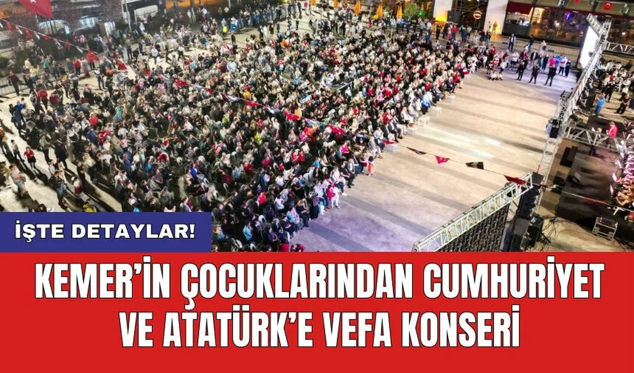 Antalya'nın gözde ilçesi Kemer'de, 120 kişilik Kemer Belediyesi Cumhuriyet Orkestrası, 70 kişilik Kemer Cumhuriyet Korosu ve 18 kişilik Kemer Belediyesi Çocuk Halk Oyunları ekibinin bir araya gelmesiyle oluşan toplamda 208 kişilik dev bir orkestra, 23 Nisan Ulusal Egemenlik ve Çocuk Bayramı'nı coşkuyla kutladı. Kemer sahnesinde gerçekleşen bu özel konserde, sanat dolu anlar yaşandı.