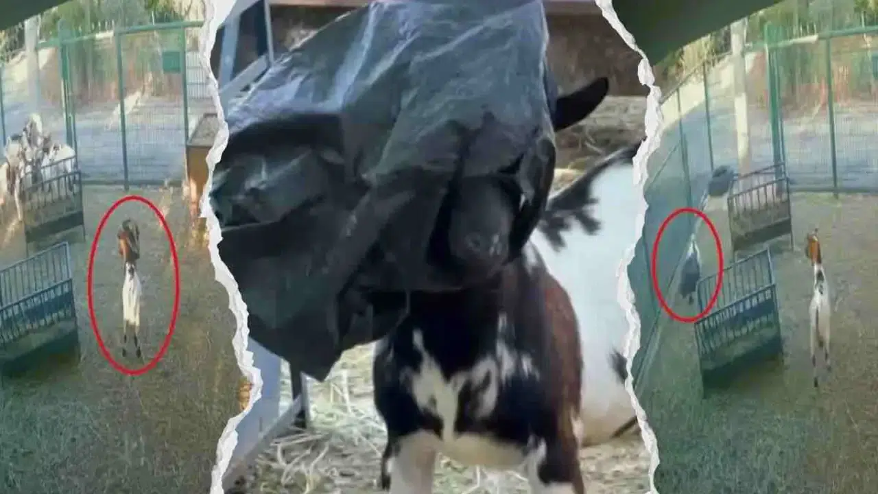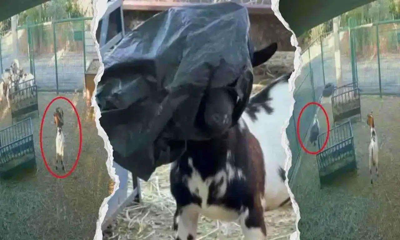 Poşeti başına geçiren keçi, koşarak diğer keçilerin arasına girmeye çalıştı. Ancak diğer keçiler, poşetli hayvandan korkarak sağa sola kaçıştı. O anlar ahırda büyük bir hareketliliğe yol açtı. Diğer keçilerin korku dolu bakışları güldürdü