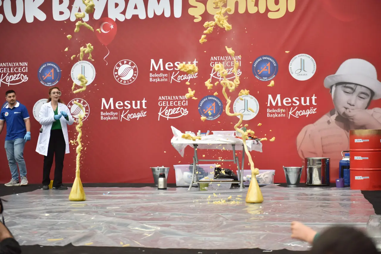 Antalya Bilim Merkezi tarafından sahneye taşınan deneyler, şenliğin en dikkat çekici bölümlerinden biri oldu. Sıvı azot, yanardağ patlaması, el yakmayan ateş ve fil dişi macunu gibi ilginç deneylerin sergilendiği 45 dakikalık gösteriler, izleyenleri adeta büyüledi. Bilimsel prensiplerin eğlenceli bir dille anlatıldığı şovlarda çocuklar hem öğrendi hem de eğlendi.