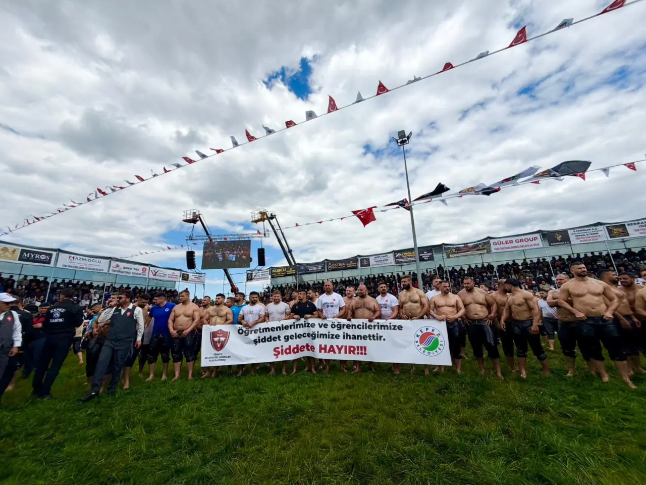 Antalya Kepez Belediyesi’nin ev sahipliğinde 12 yıl aradan sonra yeniden kurulan er meydanı, yalnızca güreş heyecanına değil, anlamlı bir toplumsal mesaja da sahne oldu. Başaltı ve baş boyu kategorilerinde mücadele eden pehlivanlar, “Öğretmenlerimize ve öğrencilerimize yönelik şiddet geleceğimize ihanettir” yazılı pankartla çayıra çıkarak eğitim camiasına yönelik şiddet olaylarına tepki gösterdi. Şanlıurfa ve Kahramanmaraş’ta yaşanan olayların kınandığı bu anlamlı anlar, izleyicilerden büyük alkış aldı.