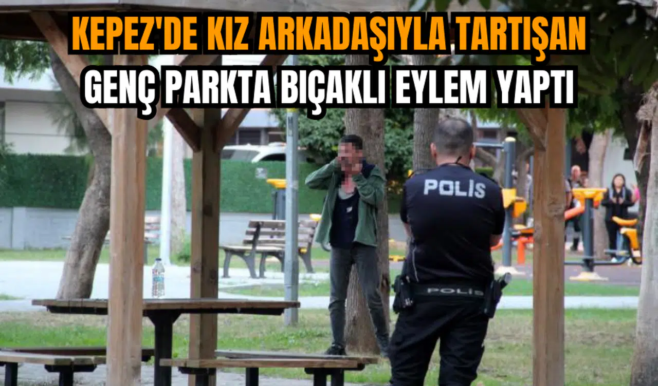 Antalya’nın Kepez ilçesinde, kız arkadaşıyla tartışan ve bunalıma giren bir genç, elindeki bıçakla parkta korku dolu anlar yaşattı.