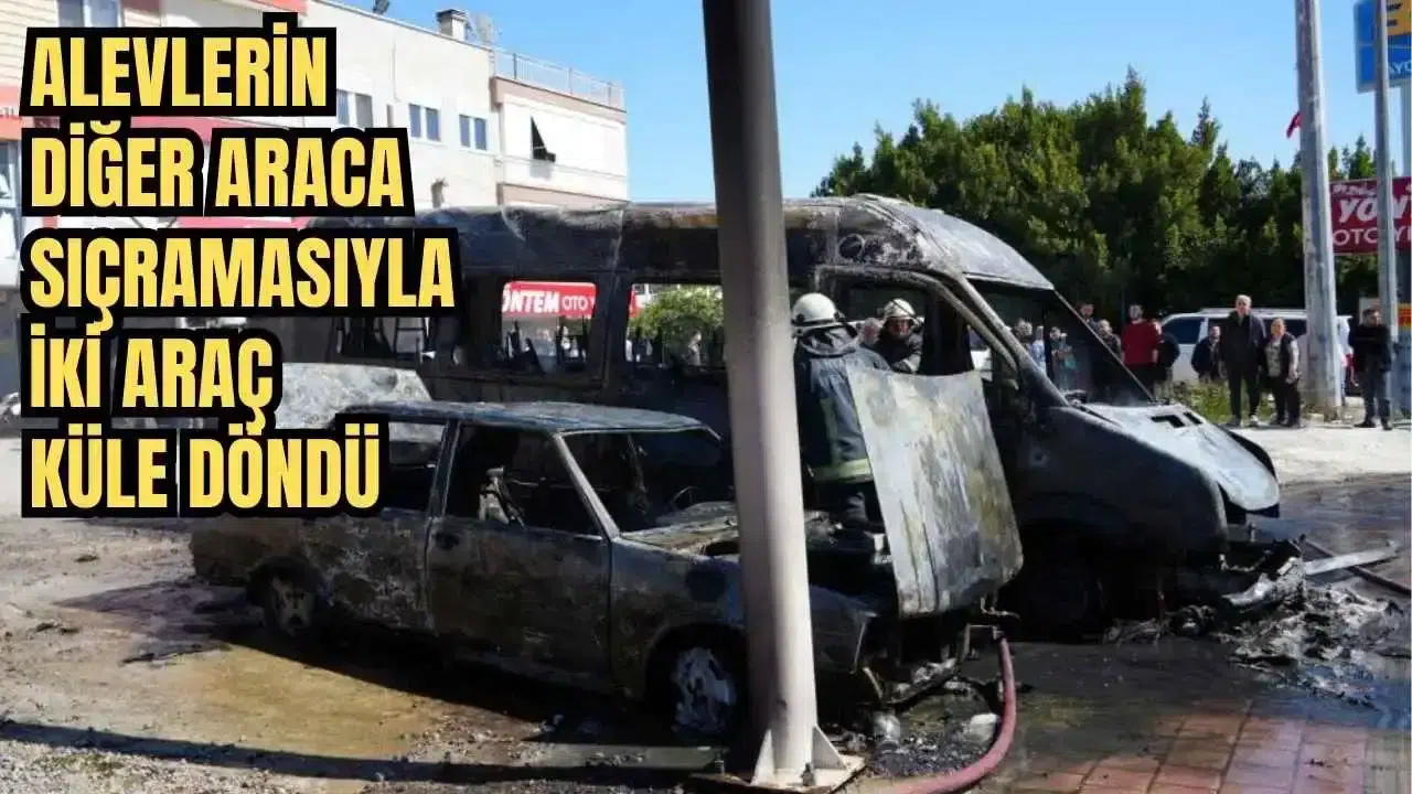 Antalya’nın Kepez ilçesi Kanal Mahallesi Sakarya Bulvarı’nda park halindeki iki araçta henüz belirlenemeyen bir nedenle yangın çıktı. 07 C 3596 plakalı servis minibüsü ile 07 YGZ 18 plakalı otomobil, kısa sürede büyüyen alevlerin etkisiyle tamamen yanarak kullanılamaz hale geldi.