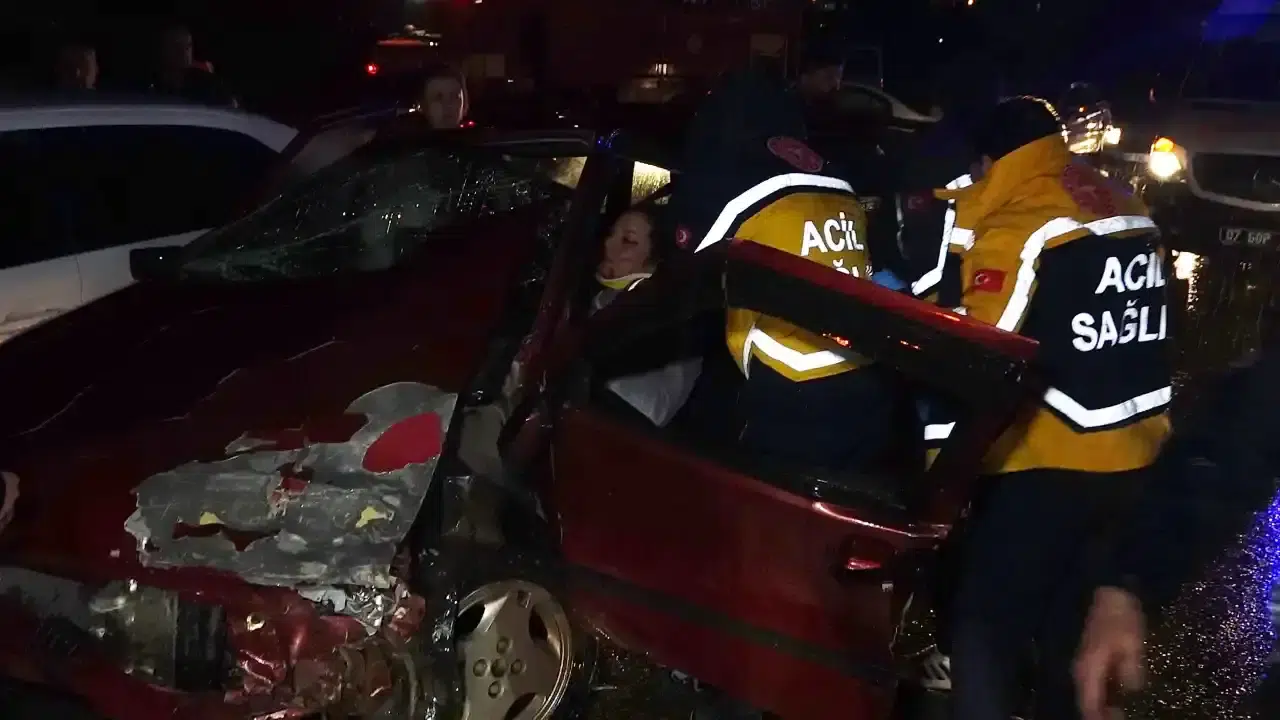 Antalya’nın Kepez ilçesinde dün akşam saatlerinde meydana gelen trafik kazası korku dolu anlara sahne oldu. Barış Manço Bulvarı üzerinde, saat 19.30 sıralarında gerçekleşen olayda, iki otomobil yoğun yağışın etkisiyle kayganlaşan yolda çarpıştı. Çarpışmanın şiddetiyle savrulan araçlarda bulunan 5 kişi yaralanırken, sürücülerden biri hurdaya dönen otomobilde sıkıştı.