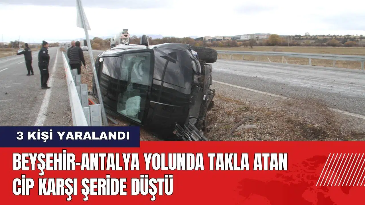 Bariyerlere çarparak takla atan cip sürüklendi ve trafik levhasına çarptıktan sonra ters istikamete devrildi. Yan yatan araçtaki sürücü ile Ö.K. ve A.B. yaralandı. Yaralılar kaza yerine ulaşan sağlık ekipleri tarafından Beyşehir Devlet Hastanesi'ne kaldırılarak tedavi altına alındı. Yaralıların Antalya’dan Ankara’ya gitmek üzere yola çıktıkları belirtildi.